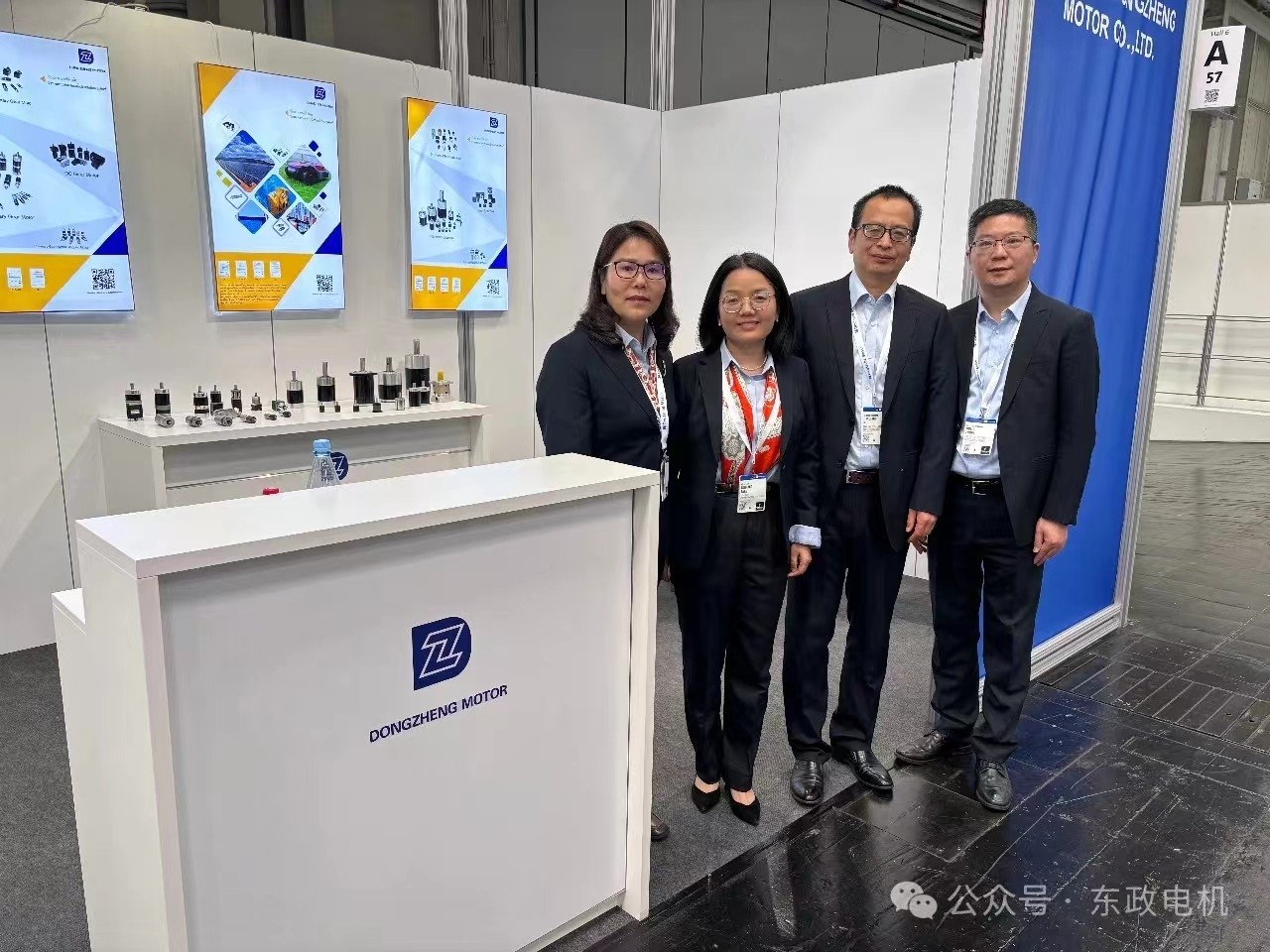 东政电机总经理韦剑强携带销售副总经理一行参展,向全球观众展示自主研发的新一代的行星减速器及减速电机等系列展品。